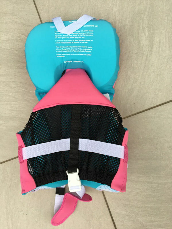 ベビーサイズの90-110cm 子供専用の安全規格と安全具としてのデザイン性を併せ持った人気のシリーズです 呼吸を確保するため顔が水面に出るよう設計されたヘッドフロート(頭枕)付のタイプです。